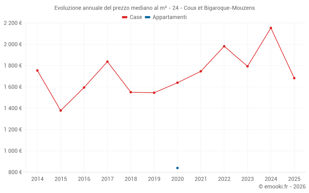 Qual è il prezzo al m2 delle case in Coux et Bigaroque-Mouzens?