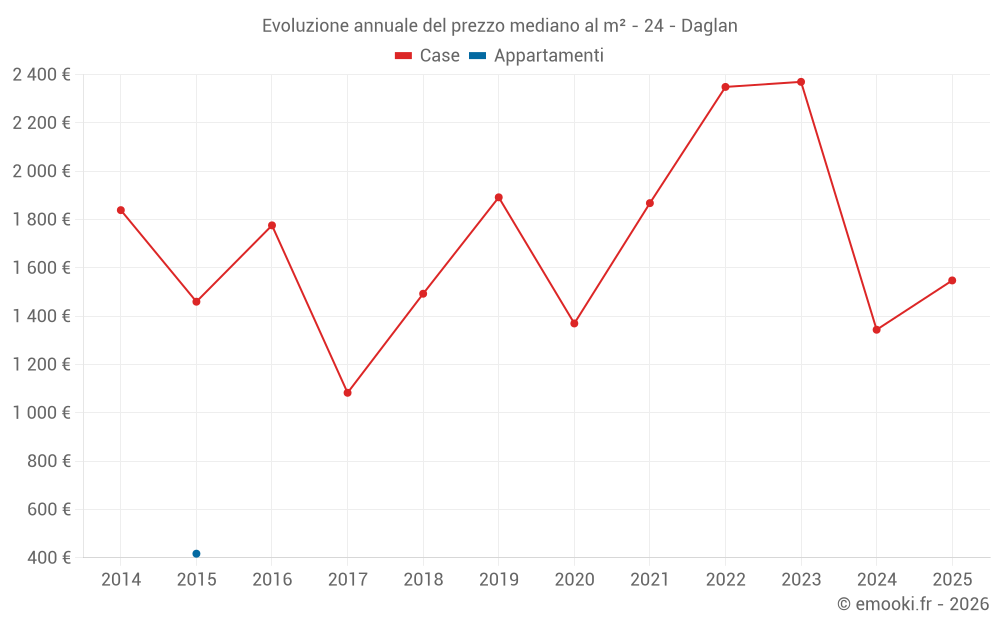 Il prezzo mediano sulle 18 transazioni di case degli ultimi 24 mesi nel comune di Daglan era di 1 580 € al metro quadrato per un valore patrimoniale mediano di 182 500 €. In questo periodo il 60% delle transazioni era tra 1 219 e 2 895 € al metro quadrato (dal 2° all'8° decile).