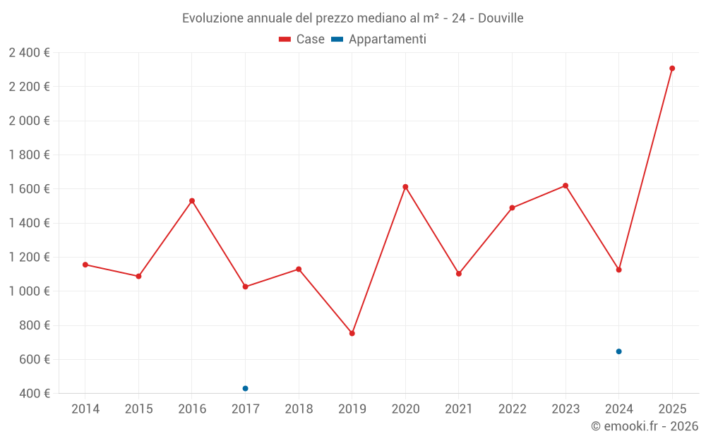 Evoluzione del prezzo mediano al m² degli appartamenti