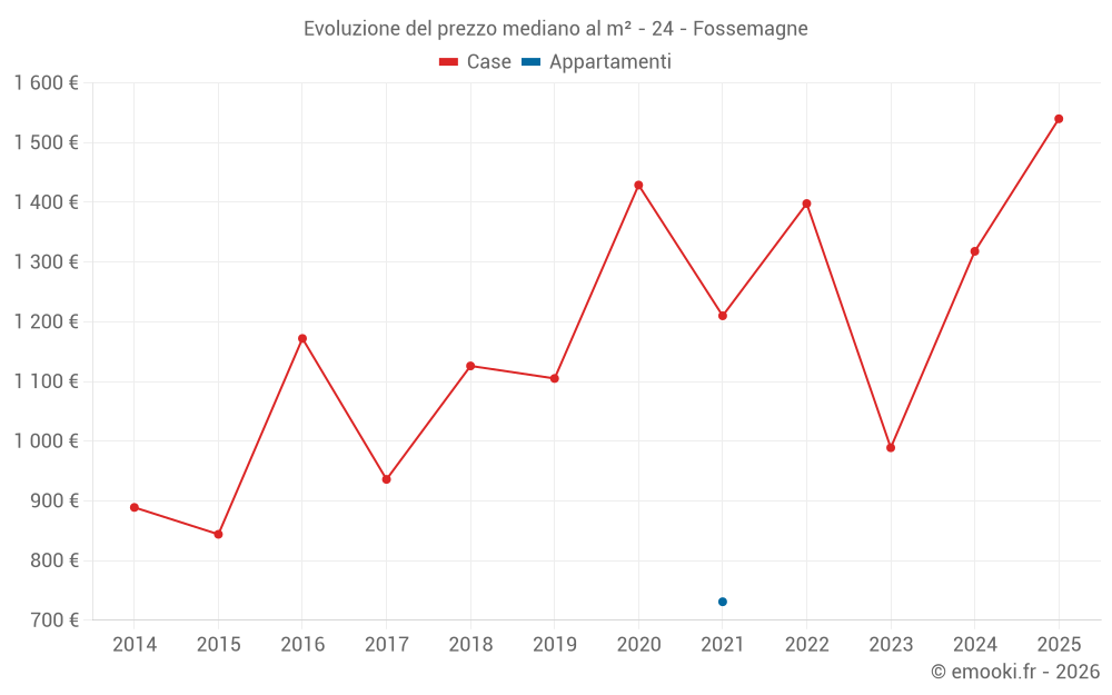 Il prezzo mediano sulle 16 transazioni di case degli ultimi 24 mesi nel comune di Fossemagne era di 1 265 € al metro quadrato per un valore patrimoniale mediano di 150 500 €. In questo periodo il 60% delle transazioni era tra 976 e 2 044 € al metro quadrato (dal 2° all'8° decile).