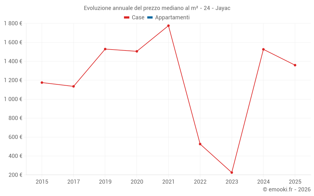 Evoluzione del prezzo mediano al m² degli appartamenti