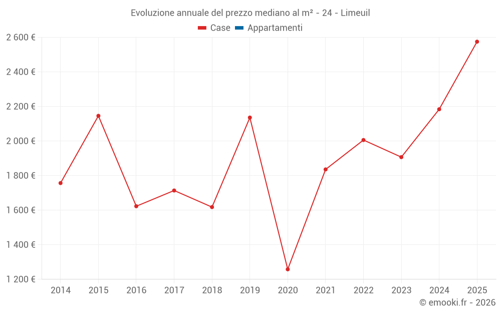 Evoluzione del prezzo mediano al m² degli appartamenti