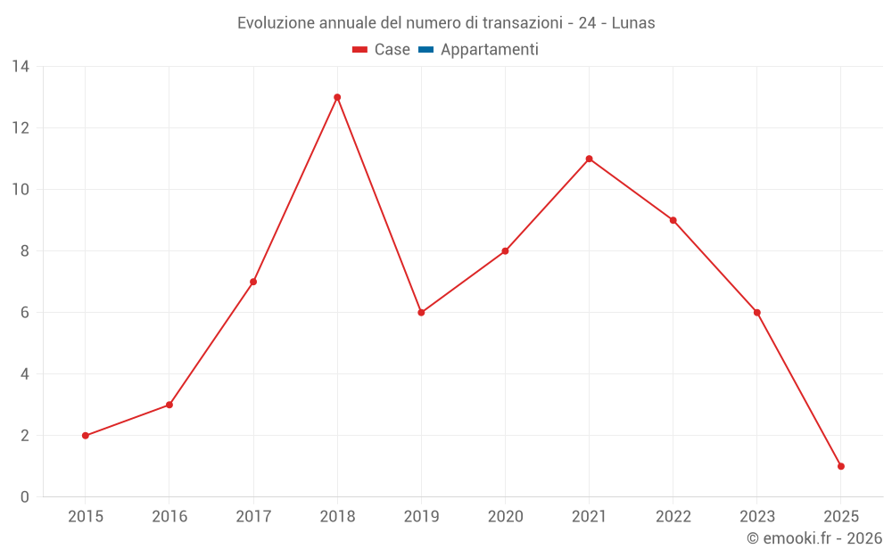 Mappa dei prezzi della casa nel comune di Lunas, scegli una sezione per vedere le transazioni per parcella.