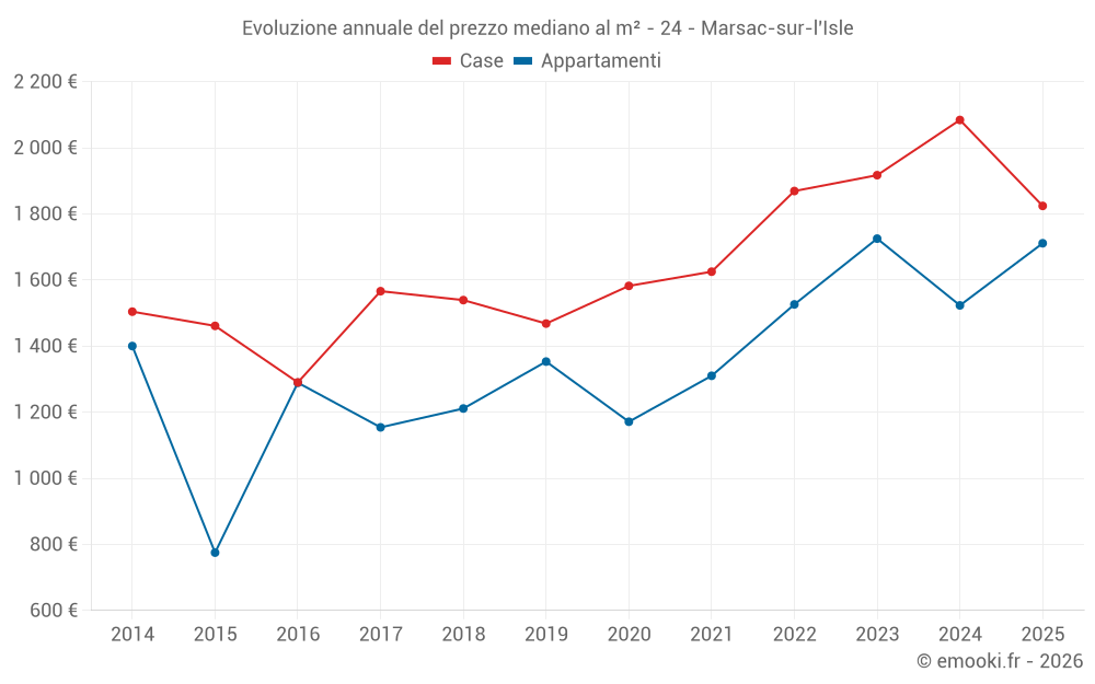 Qual è il prezzo al m2 delle case in Marsac-sur-l'Isle?