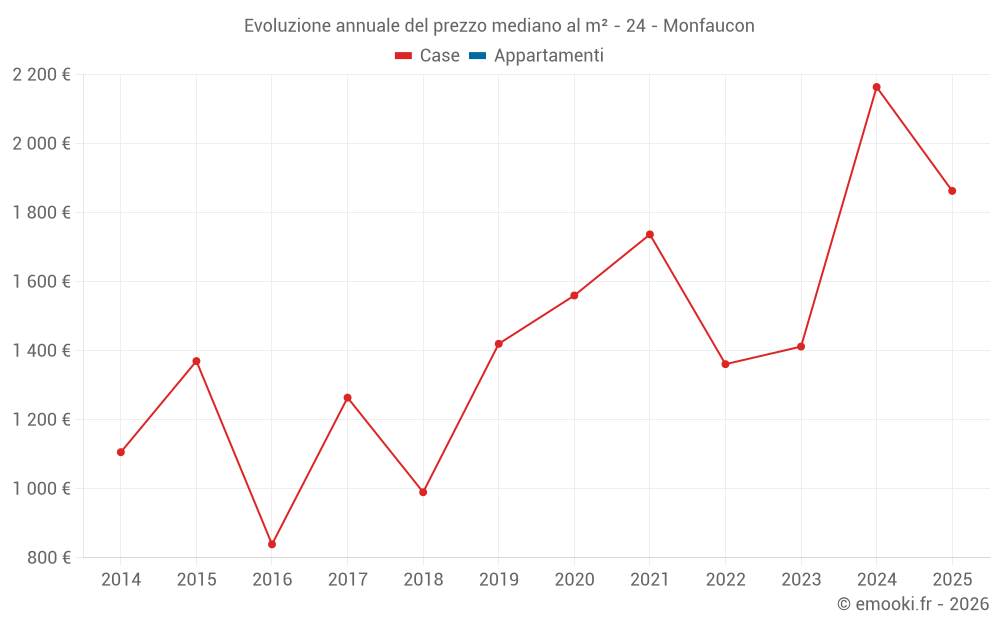 Evoluzione del prezzo mediano al m² degli appartamenti