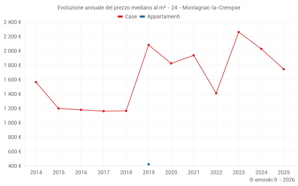Evoluzione del prezzo mediano al m² degli appartamenti