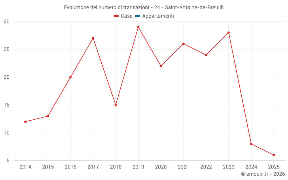 Attenzione, ultimo anno incompleto. Le proiezioni sono effettuate in base alle proporzioni tra semestri dell'anno precedente a livello dipartimentale/nazionale e per tipo di proprietà.