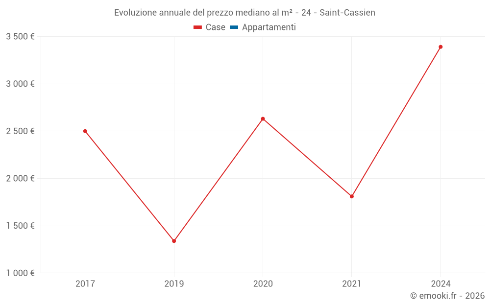 Evoluzione annuale del prezzo mediano al m²