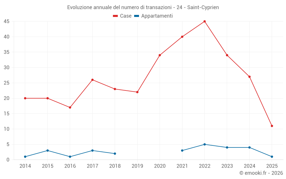 Il prezzo mediano sulle 27 transazioni di case degli ultimi 12 mesi nel comune di Saint-Cyprien era di 1 212 € al metro quadrato per un valore patrimoniale mediano di 120 000 €. In questo periodo il 60% delle transazioni era tra 758 e 1 879 € al metro quadrato (dal 2° all'8° decile).
