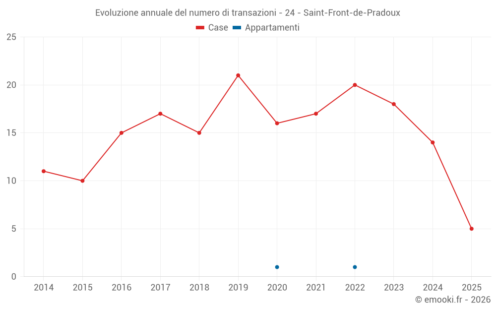 Il prezzo mediano sulle 30 transazioni di case degli ultimi 24 mesi nel comune di Saint-Front-de-Pradoux era di 1 556 € al metro quadrato per un valore patrimoniale mediano di 126 947 €. In questo periodo il 60% delle transazioni era tra 925 e 1 760 € al metro quadrato (dal 2° all'8° decile).