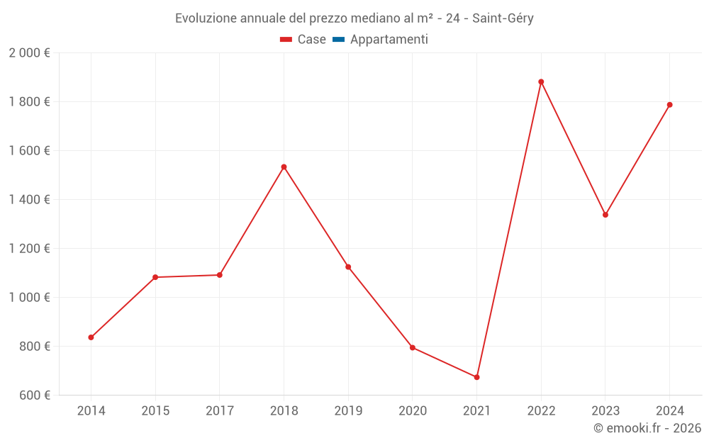 Evoluzione annuale del prezzo mediano al m²