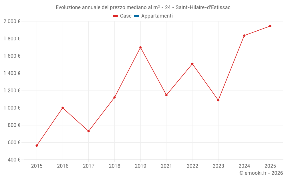 Evoluzione annuale del prezzo mediano al m²