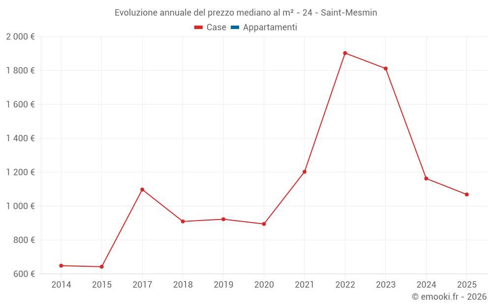 Evoluzione del prezzo mediano al m² degli appartamenti