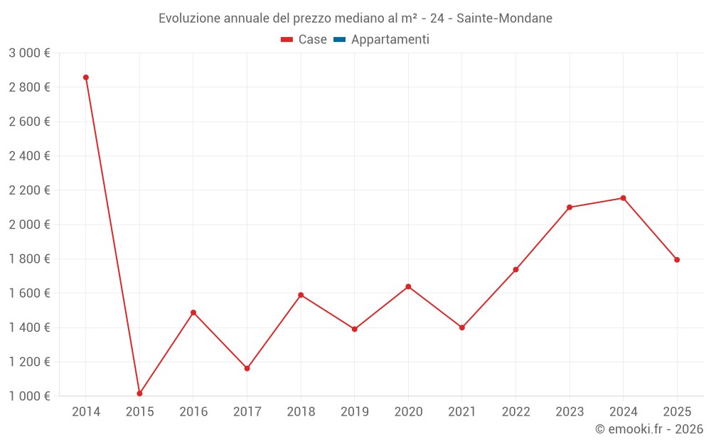 Evoluzione del prezzo mediano al m² degli appartamenti