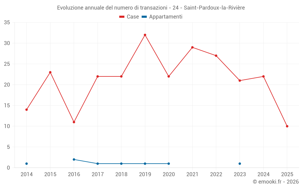 Il prezzo mediano sulle 21 transazioni di case degli ultimi 12 mesi nel comune di Saint-Pardoux-la-Rivière era di 1 165 € al metro quadrato per un valore patrimoniale mediano di 75 000 €. In questo periodo il 60% delle transazioni era tra 473 e 1 648 € al metro quadrato (dal 2° all'8° decile).