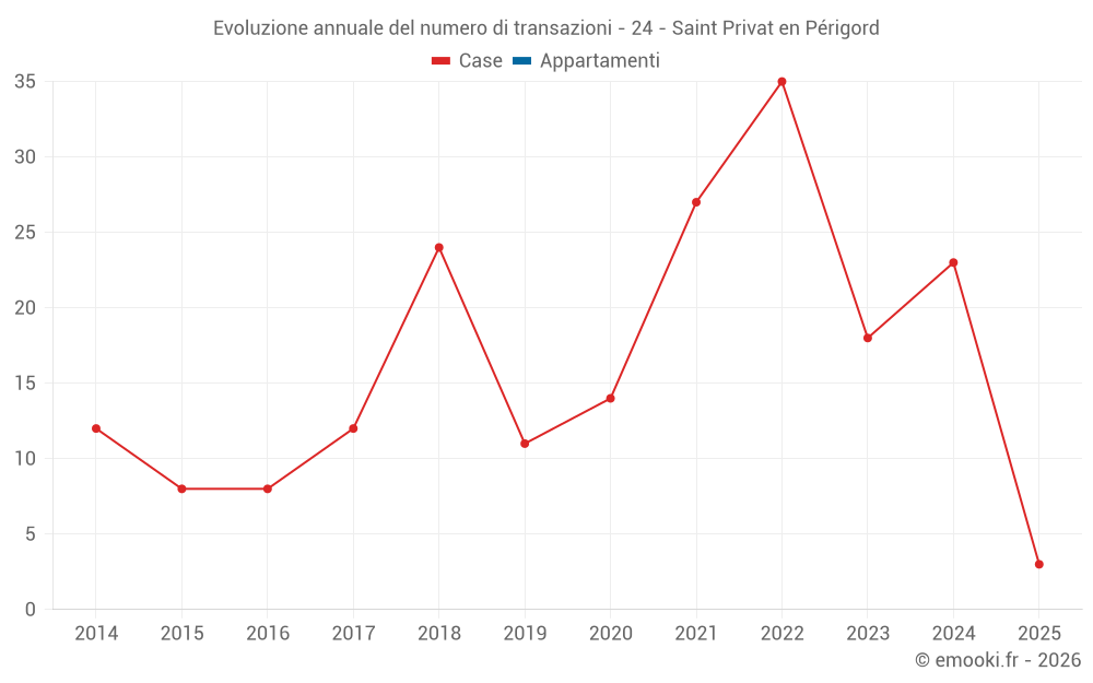 Il prezzo mediano sulle 31 transazioni di case degli ultimi 24 mesi nel comune di Saint Privat en Périgord era di 1 328 € al metro quadrato per un valore patrimoniale mediano di 170 000 €. In questo periodo il 60% delle transazioni era tra 935 e 1 845 € al metro quadrato (dal 2° all'8° decile).