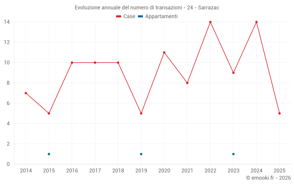 Il prezzo mediano sulle 25 transazioni di case degli ultimi 24 mesi nel comune di Sarrazac era di 1 736 € al metro quadrato per un valore patrimoniale mediano di 147 000 €. In questo periodo il 60% delle transazioni era tra 1 263 e 2 168 € al metro quadrato (dal 2° all'8° decile).