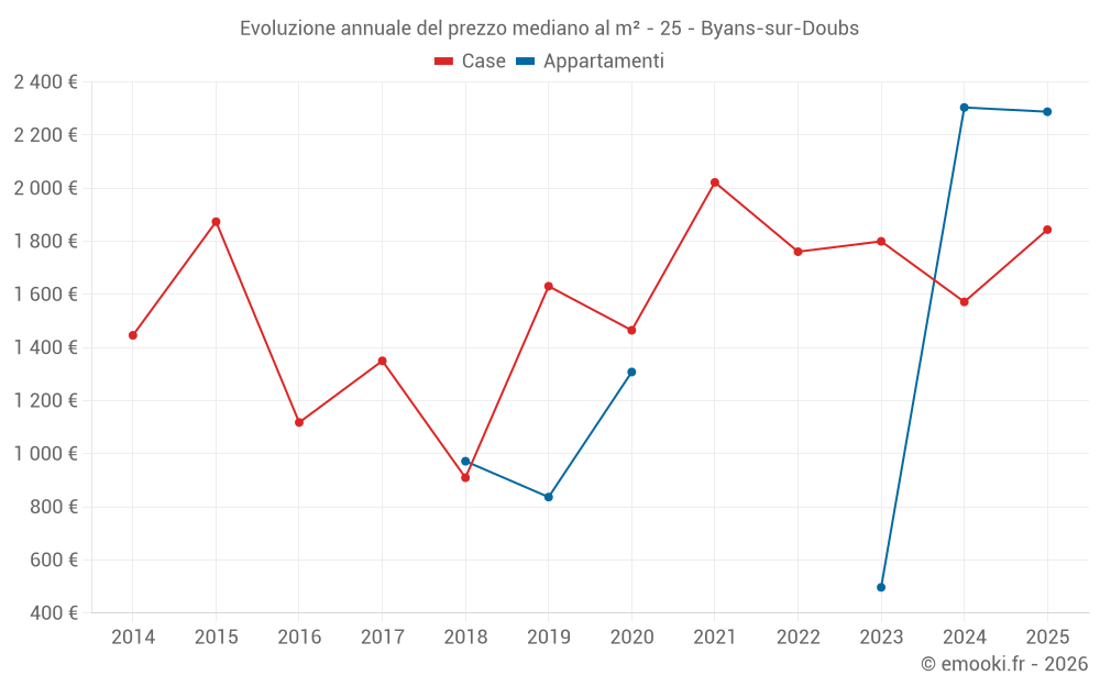 Il prezzo al m² delle case è diminuito del 8.8% da 4 anni, ma è aumentato del 103% in 7 anni.