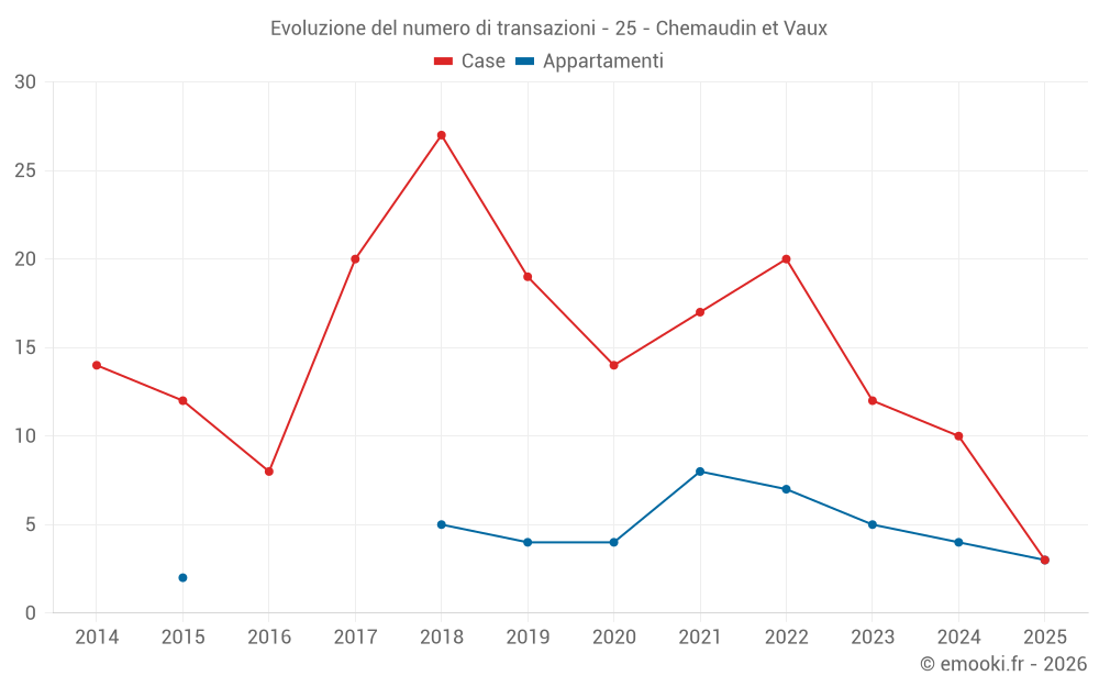 Il prezzo mediano sulle 19 transazioni di case degli ultimi 24 mesi nel comune di Chemaudin et Vaux era di 2 529 € al metro quadrato per un valore patrimoniale mediano di 261 000 €. In questo periodo il 60% delle transazioni era tra 1 885 e 3 230 € al metro quadrato (dal 2° all'8° decile).