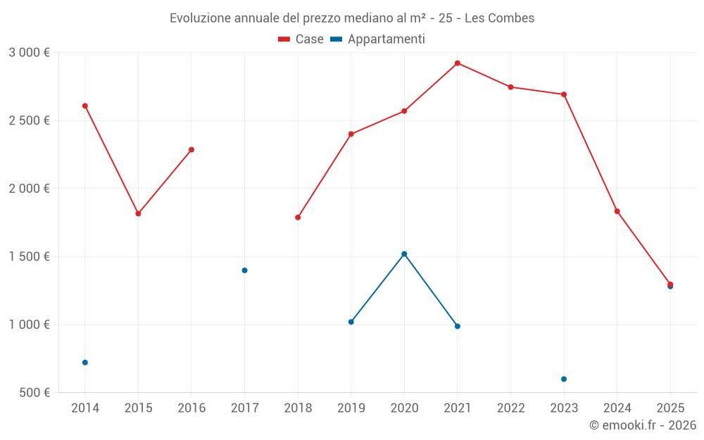 Evoluzione del prezzo mediano al m² degli appartamenti