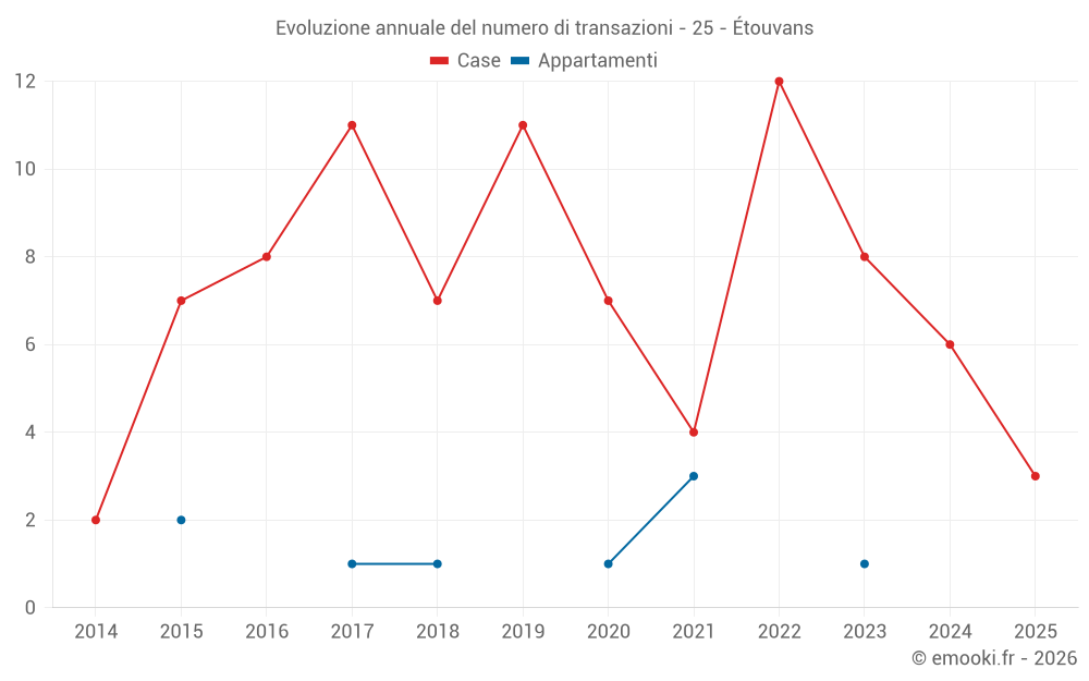 Il prezzo mediano sulle 14 transazioni di case degli ultimi 24 mesi nel comune di Étouvans era di 1 388 € al metro quadrato per un valore patrimoniale mediano di 126 450 €. In questo periodo il 60% delle transazioni era tra 986 e 2 105 € al metro quadrato (dal 2° all'8° decile).