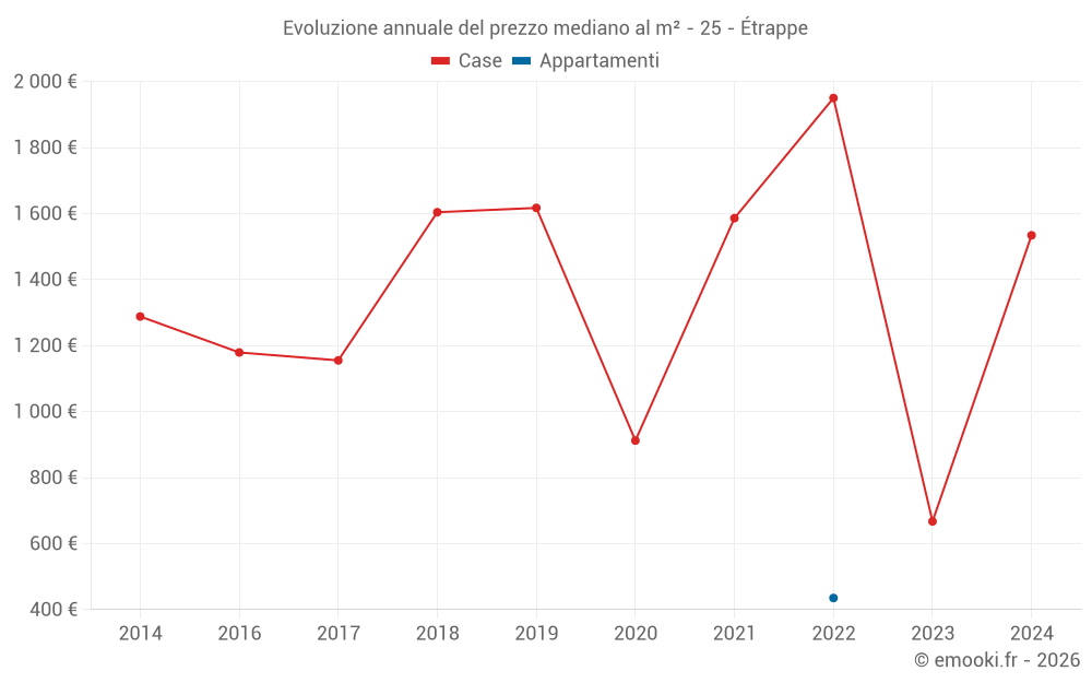 Evoluzione del prezzo mediano al m² degli appartamenti