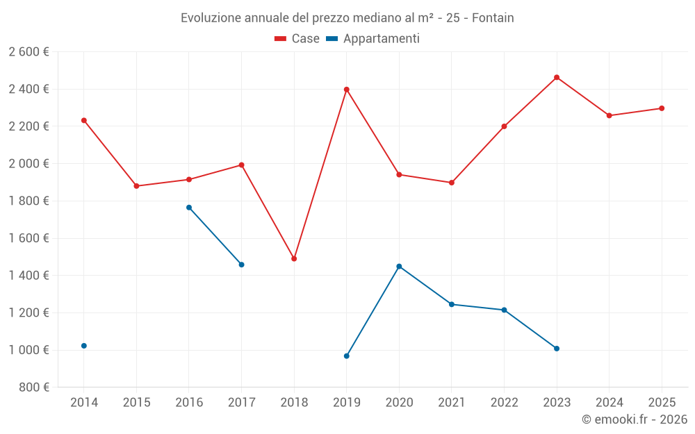 Il prezzo mediano sulle 14 transazioni di case degli ultimi 24 mesi nel comune di Fontain era di 2 281 € al metro quadrato per un valore patrimoniale mediano di 254 250 €. In questo periodo il 60% delle transazioni era tra 1 857 e 2 480 € al metro quadrato (dal 2° all'8° decile).