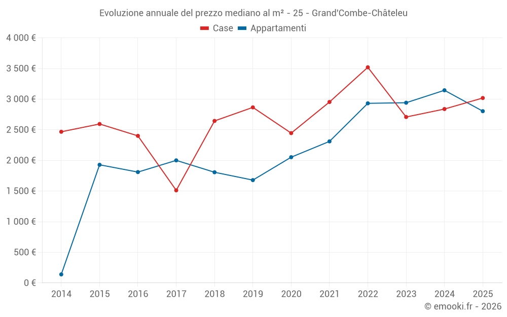 Qual è il prezzo al m2 delle case in Grand'Combe-Châteleu?