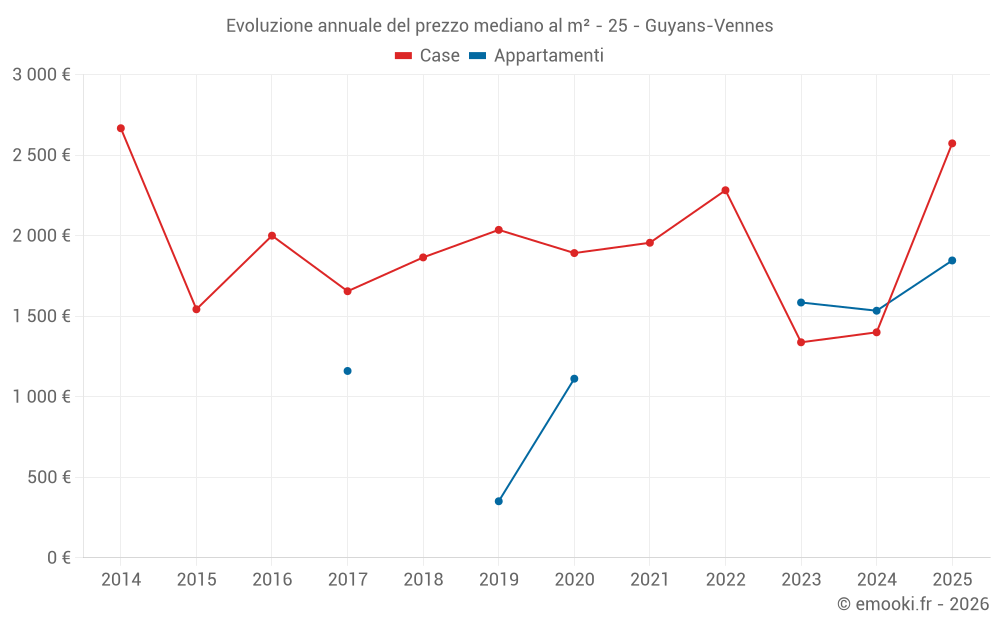 Prezzo al m² in Guyans-Vennes