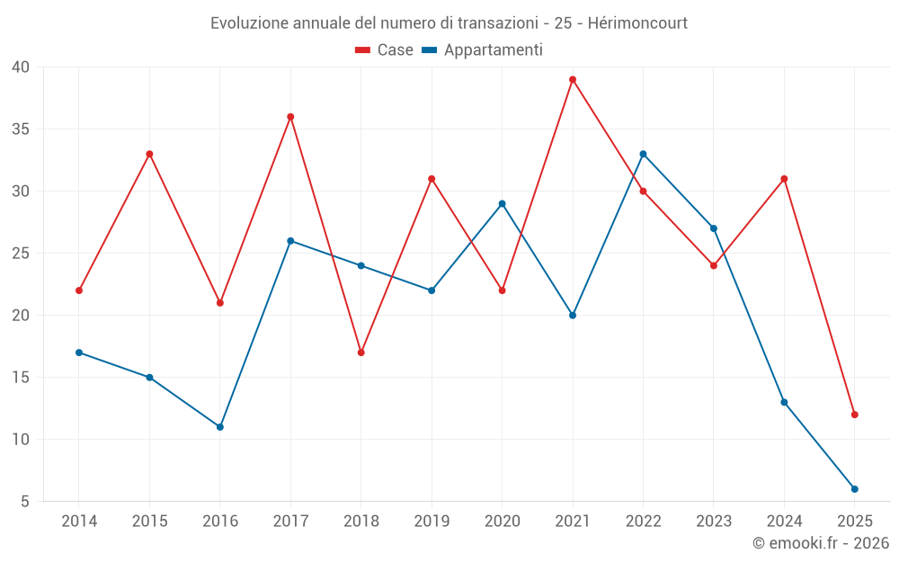 Il prezzo mediano sulle 30 transazioni di case degli ultimi 12 mesi nel comune di Hérimoncourt era di 1 184 € al metro quadrato per un valore patrimoniale mediano di 92 000 €. In questo periodo il 60% delle transazioni era tra 760 e 1 728 € al metro quadrato (dal 2° all'8° decile).