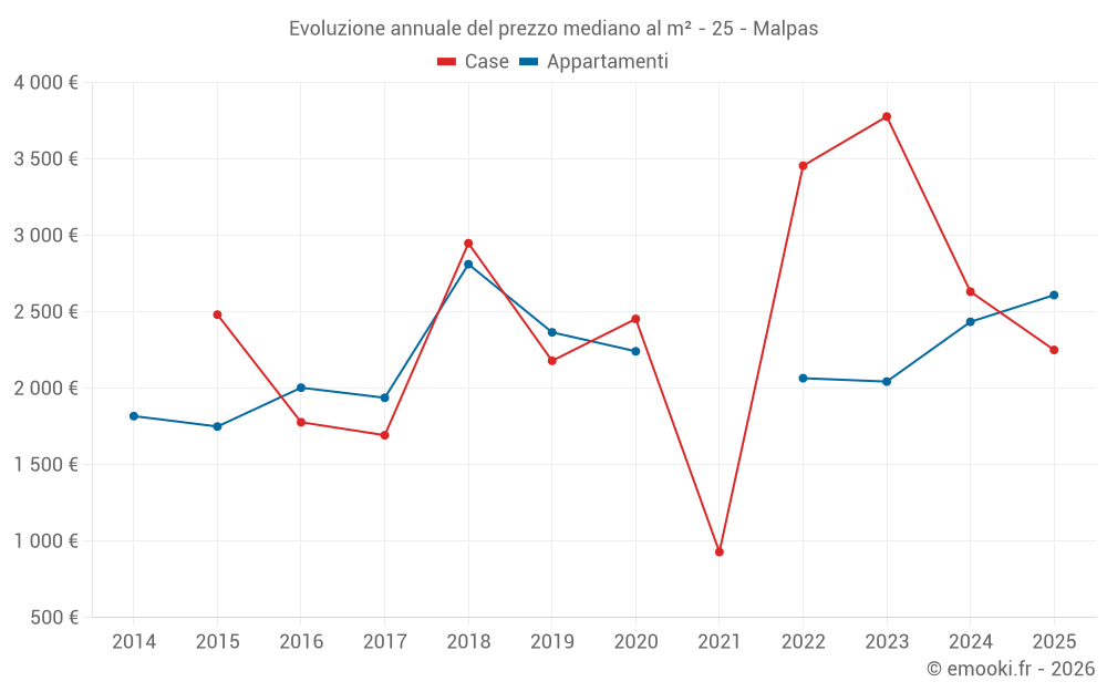 Evoluzione del prezzo mediano al m² degli appartamenti