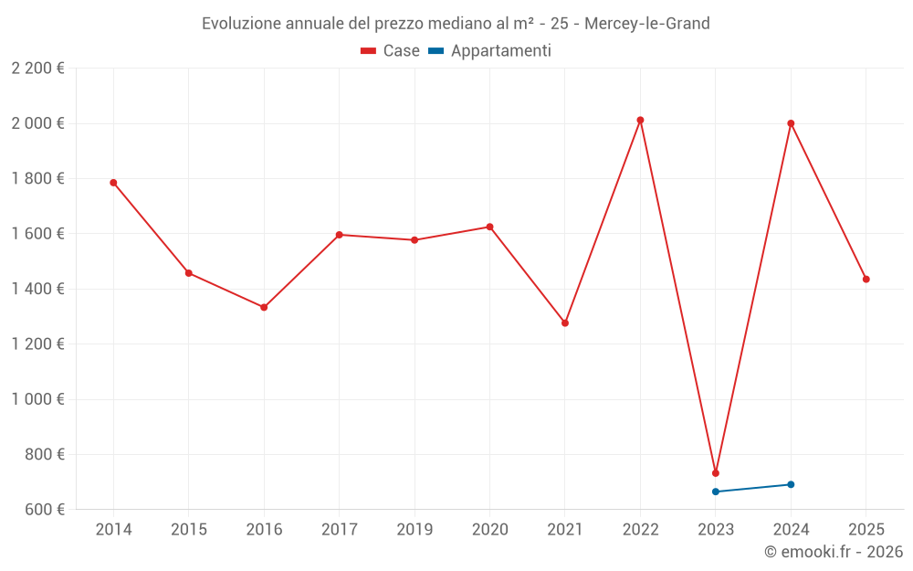 Evoluzione del prezzo mediano al m² degli appartamenti