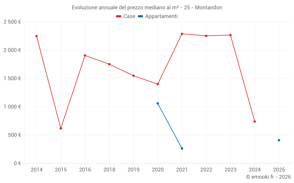 Evoluzione del prezzo mediano al m² degli appartamenti