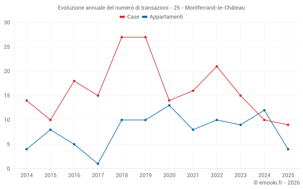 Il prezzo mediano sulle 20 transazioni di appartamenti degli ultimi 24 mesi nel comune di Montferrand-le-Château era di 1 714 € al metro quadrato per un valore patrimoniale mediano di 183 750 €. In questo periodo il 60% delle transazioni era tra 1 254 e 2 203 € al metro quadrato (dal 2° all'8° decile).