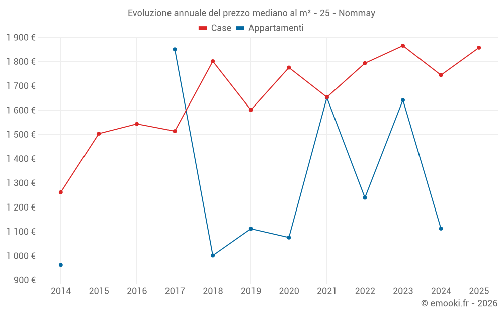 Il prezzo mediano sulle 25 transazioni di case degli ultimi 24 mesi nel comune di Nommay era di 1 800 € al metro quadrato per un valore patrimoniale mediano di 180 000 €. In questo periodo il 60% delle transazioni era tra 1 414 e 2 241 € al metro quadrato (dal 2° all'8° decile).
