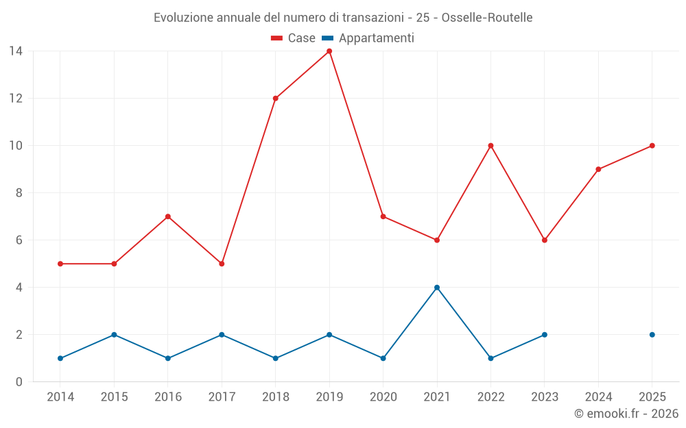 Il prezzo mediano sulle 19 transazioni di case degli ultimi 24 mesi nel comune di Osselle-Routelle era di 2 151 € al metro quadrato per un valore patrimoniale mediano di 235 000 €. In questo periodo il 60% delle transazioni era tra 1 641 e 2 515 € al metro quadrato (dal 2° all'8° decile).