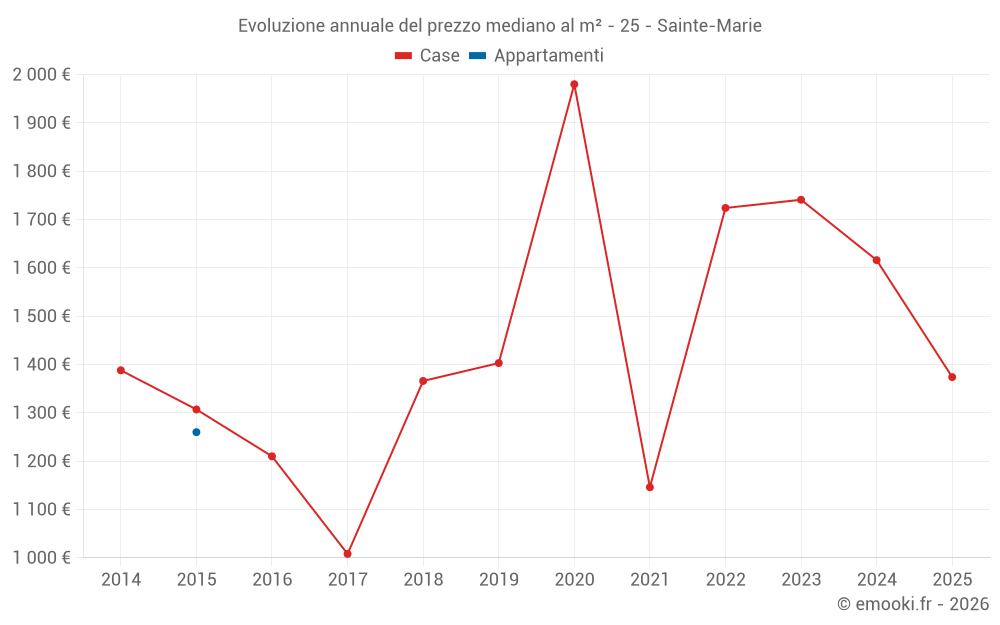 Evoluzione del prezzo mediano al m² degli appartamenti