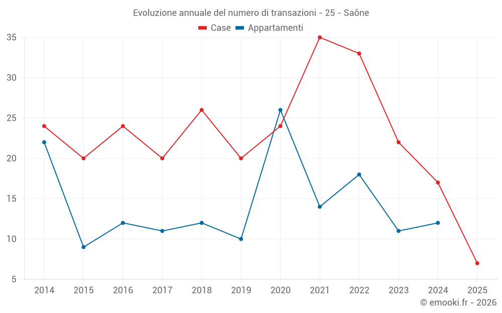 Il prezzo mediano sulle 17 transazioni di case degli ultimi 12 mesi nel comune di Saône era di 2 201 € al metro quadrato per un valore patrimoniale mediano di 230 000 €. In questo periodo il 60% delle transazioni era tra 1 903 e 2 719 € al metro quadrato (dal 2° all'8° decile).