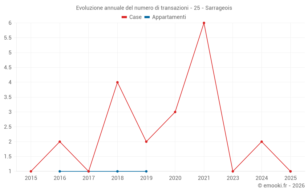 Attenzione, ultimo anno incompleto. Le proiezioni sono effettuate in base alle proporzioni tra semestri dell'anno precedente a livello dipartimentale/nazionale e per tipo di proprietà .