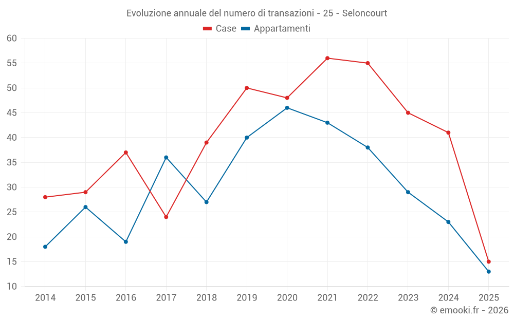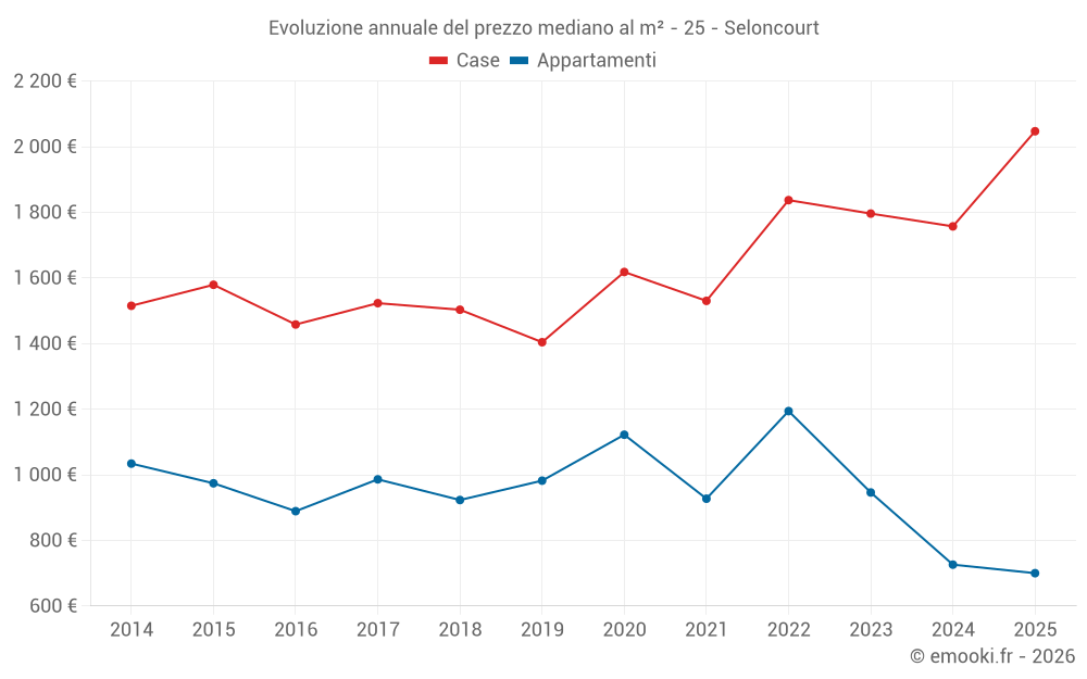 Il prezzo mediano sulle 30 transazioni di case degli ultimi 12 mesi nel comune di Seloncourt era di 1 778 € al metro quadrato per un valore patrimoniale mediano di 165 548 €. In questo periodo il 60% delle transazioni era tra 1 014 e 2 410 € al metro quadrato (dal 2° all'8° decile).