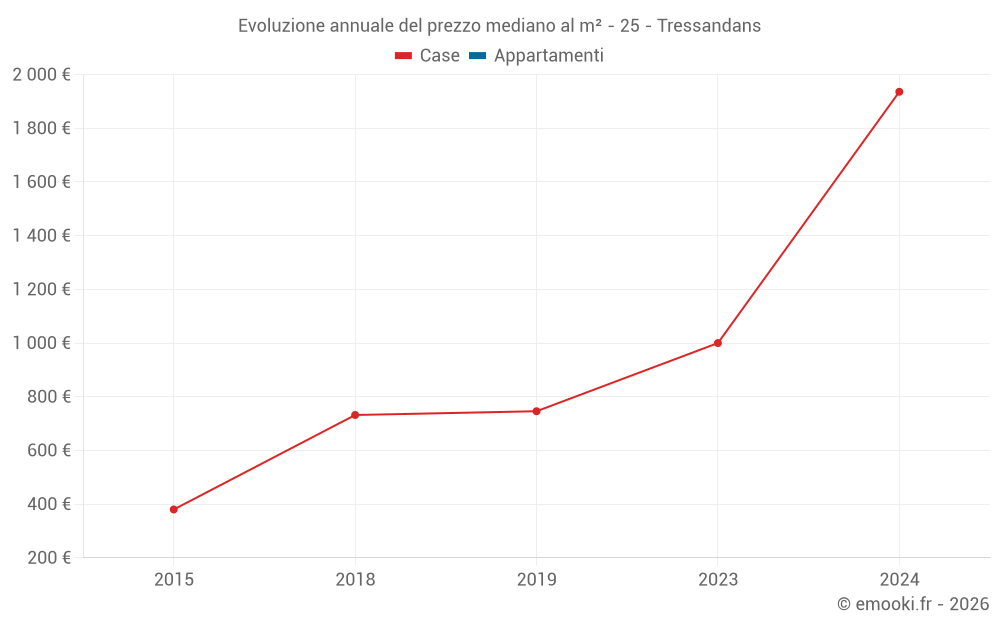 Evoluzione del prezzo mediano al m² degli appartamenti