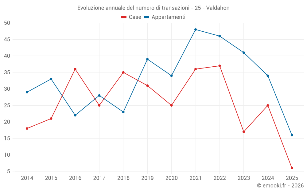 Il prezzo mediano sulle 32 transazioni di appartamenti degli ultimi 12 mesi nel comune di Valdahon era di 2 483 € al metro quadrato per un valore patrimoniale mediano di 197 160 €. In questo periodo il 60% delle transazioni era tra 1 726 e 3 178 € al metro quadrato (dal 2° all'8° decile).