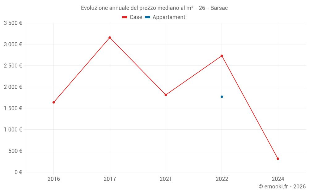 Attenzione, ultimo anno incompleto. Le proiezioni sono effettuate in base alle proporzioni tra semestri dell'anno precedente a livello dipartimentale/nazionale e per tipo di proprietà .