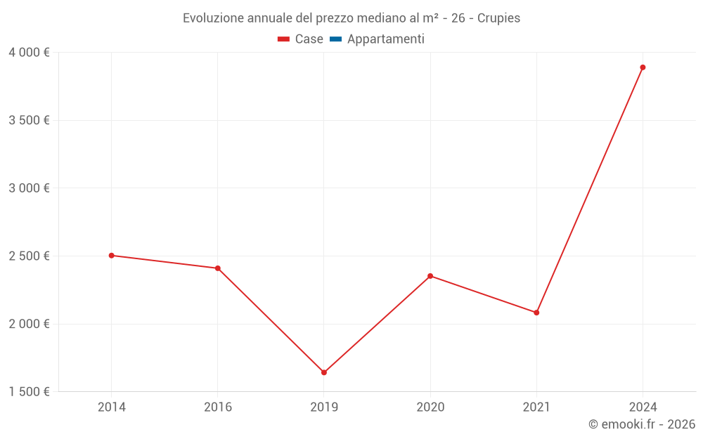 Evoluzione del prezzo mediano al m² degli appartamenti