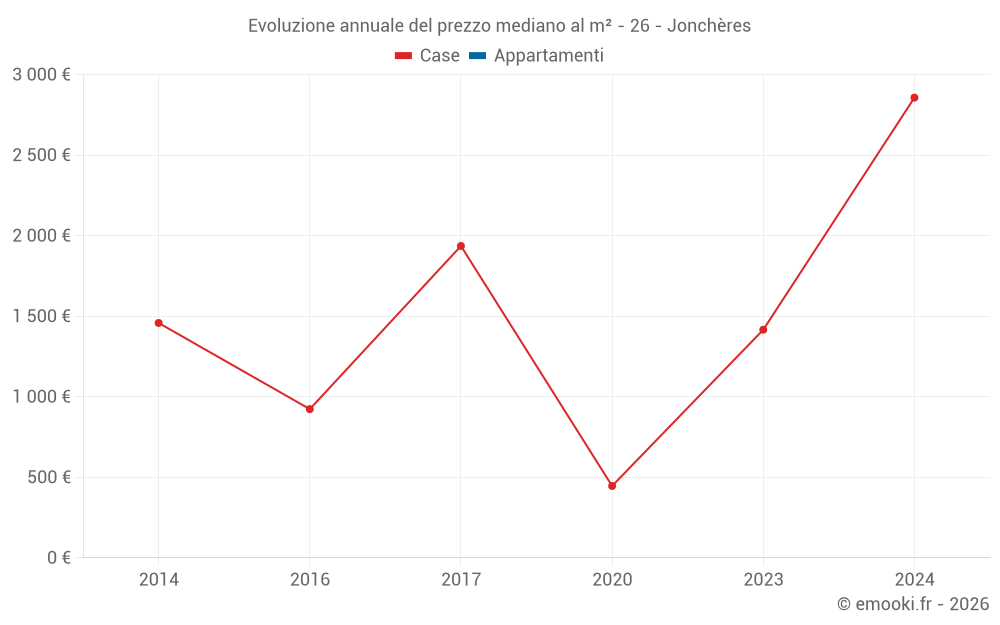 Evoluzione del prezzo mediano al m² degli appartamenti