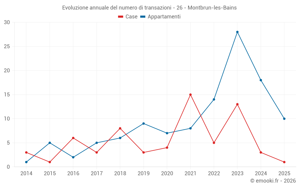 Il prezzo mediano sulle 21 transazioni di appartamenti degli ultimi 12 mesi nel comune di Montbrun-les-Bains era di 2 009 € al metro quadrato per un valore patrimoniale mediano di 75 000 €. In questo periodo il 60% delle transazioni era tra 1 855 e 2 321 € al metro quadrato (dal 2° all'8° decile).