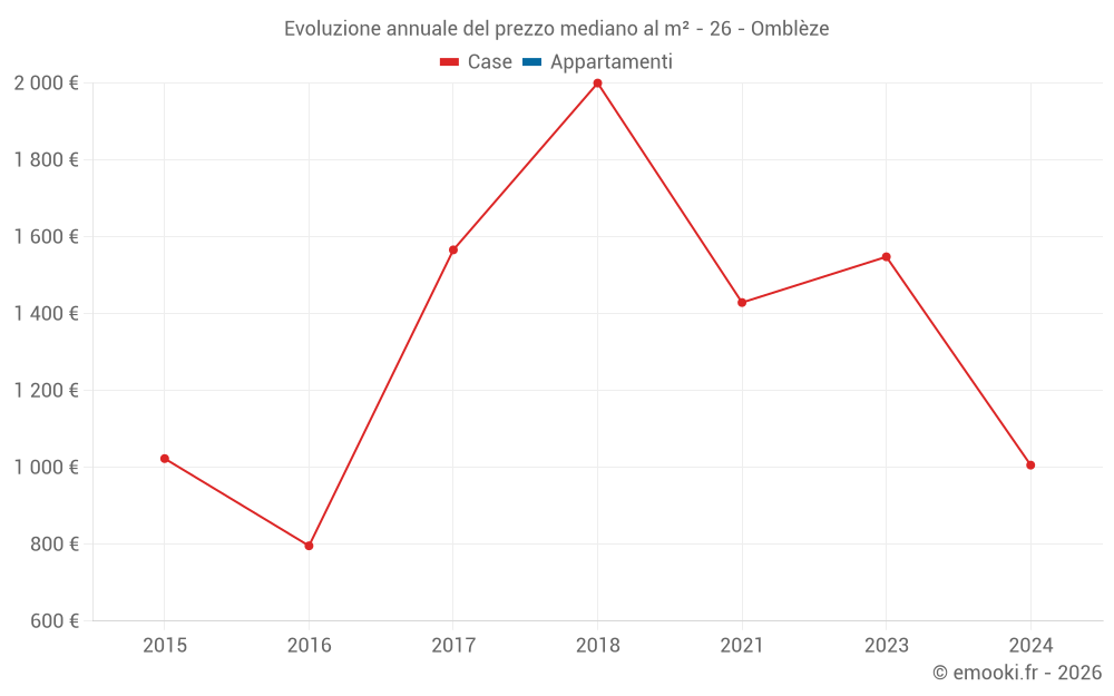 Evoluzione del prezzo mediano al m² degli appartamenti