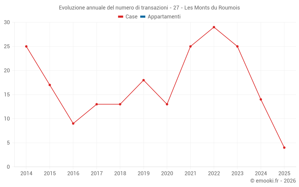 Il prezzo mediano sulle 29 transazioni di case degli ultimi 24 mesi nel comune di Les Monts du Roumois era di 1 908 € al metro quadrato per un valore patrimoniale mediano di 185 000 €. In questo periodo il 60% delle transazioni era tra 1 023 e 2 360 € al metro quadrato (dal 2° all'8° decile).