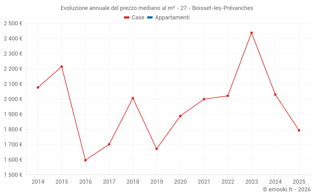 Il prezzo al m² delle case è diminuito del 26% da 2 anni, ma è aumentato del 12% in 9 anni.