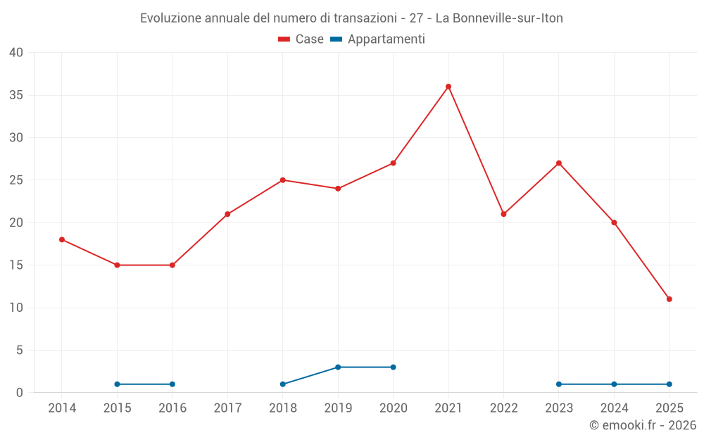 Il prezzo mediano sulle 22 transazioni di case degli ultimi 12 mesi nel comune di La Bonneville-sur-Iton era di 1 964 € al metro quadrato per un valore patrimoniale mediano di 142 400 €. In questo periodo il 60% delle transazioni era tra 1 562 e 2 322 € al metro quadrato (dal 2° all'8° decile).